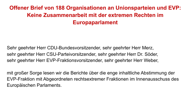 Der Paritätische Gesamtverband zeichnet einen offenen Brief mit, der dazu aufruft, im Europaparlament nicht mit extremen Parteien zusammenzuarbeiten.