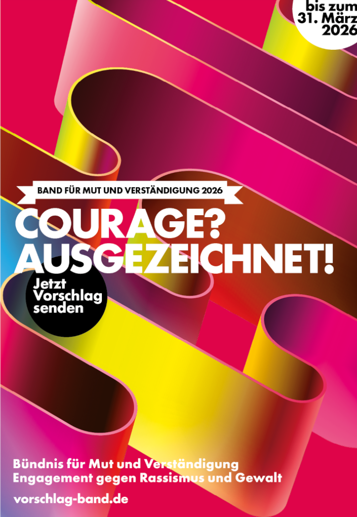 Das "Band für Mut und Verständigung" ruft dazu auf, bis zum 31.3.2026 Personen und Gruppen zu nominieren.