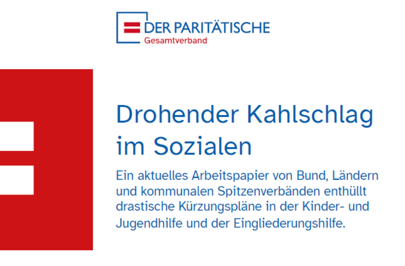 Dem Paritätischen Gesamtverband liegt ein internes Arbeitspapier vor, das belegt: Bund, Länder und kommunale Spitzenverbände diskutieren im Verborgenen drastische Kürzungen bei Leistungen für Kinder, Jugendliche und Menschen mit Behinderungen. Das 108-seitige Dokument, das heute vom Paritätischen veröffentlicht wird, stammt aus einer Arbeitsgruppe, die abseits der Öffentlichkeit harte Einschnitte für Menschen mit Behinderungen und für Kinder und Jugendliche diskutiert. Es enthält mehr als 70 Kürzungsvorschläge mit einem bezifferten Volumen von über 8,6 Milliarden Euro. Das tatsächliche Kürzungsvolumen liegt erheblich höher, da knapp zwei Drittel aller Vorschläge gar nicht mit Zahlen unterlegt sind.